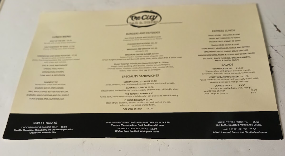 For families, the City Kid Dinner Menu balances simple favourites served with fries, making it an easy choice for little appetites. Meanwhile, the evening offerings provide a warm, welcoming setting for those looking for familiar comfort food with an occasional creative flair.